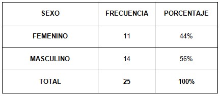 En el cuadro 2. El porcentaje mayor lo represento el sexo masculino, con 56%; seguido por el sexo femenino representado por un 44%.