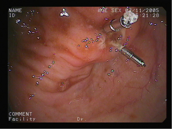 Clip en úlcera postpolipectomía.