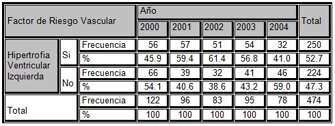 Tabla #1. Hipertrofia Ventricular Izquierda. Distribución por año. p=0.022
