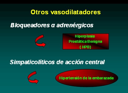 Los bloqueadores de receptores alfa, tienen su principal indicación en pacientes hipertensos, hombres, que padecen de hiperplasia benigna de la próstata, por el alivio de los síntomas urinarios que produce esta afección. Los alfabloqueadores de acción corta como el prazosín, puede producir hipotensión postural; este efecto se ve menos con los de acción sostenida como doxazosina y terazosina. Como tratamiento de la hipertensión arterial siempre han de asociarse a otros de los hipotensores de primera línea.