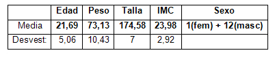 Tabla I: Perfil fisiológico de los sujetos estudiados