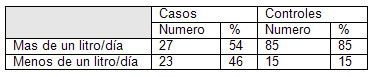 Tabla 4. Cantidad de agua ingerida por día. Consultorio Andes II. Enero-diciembre 2006.