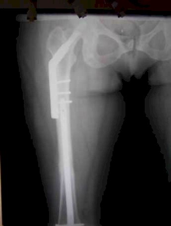Caso 1. DHS en fractura intertrocanterica e intramedular retrogrado para fractura tercio del fémur con signos de consolidación.
