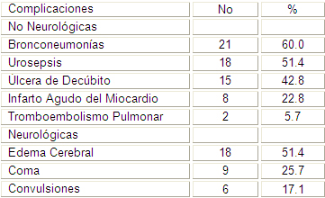 Tabla 7: Complicaciones en pacientes con enfermedad cerebrovascular.
