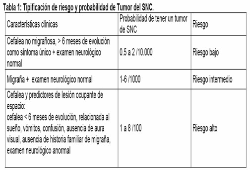 Tipificación de riesgo y probabilidad de tumor del sistema nervioso central (SNC).