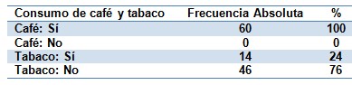 Cuadro N° 2. Hábitos de consumo de café y tabaco diarios de los grupos familiares de Cantarrana