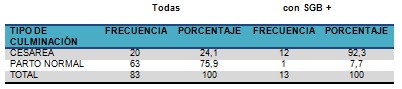 CUADRO Nº 3. Embarazadas de 35 a 37 semanas de gestación, totales y con estreptococo beta hemolítico del grupo B (SGB) positivo, distribuidas según el tipo de culminación del embarazo.