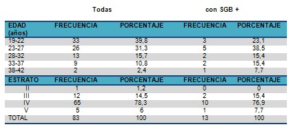 CUADRO Nº 2. Embarazadas de 35 a 37 semanas de gestación, totales y con estreptococo beta hemolítico del grupo B (SGB) positivo, distribuidas según edad y nivel socioeconómico.