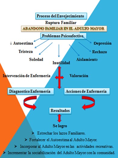 • Una vez aplicado el Proceso de Enfermería en todas sus etapas, se obtuvieron resultados positivos luego de semanas de Intervención conjuntamente con el adulto mayor, la familia y la comunidad. Se logró estrechar los lazos familiares, incorporar al Adulto Mayor en la sociabilización con otros Adultos Mayores de la comunidad, mejorar el Autoconcepto mostrándose más segura de sí misma.