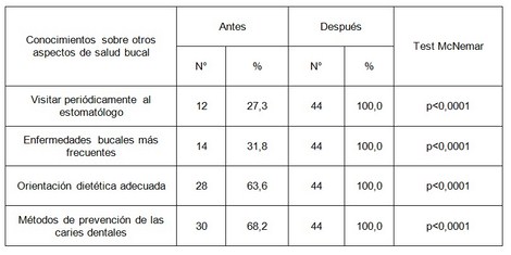 Muguerza (96) y Tayanin (97) en estudios comparativos muestran resultados similares en relación con el apoderamiento de los conocimientos en cuanto a la identificación de la dieta cariogénica y su influencia en la salud bucal.