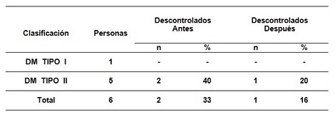 Tabla 2c. Diabéticos descontrolados según clasificación antes y después del estudio