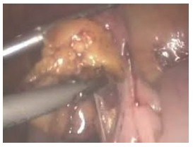 Si el apéndice estuviera groseramente inflamado, se puede reemplazar para una fácil extracción por el trócar de Góëtz, de 20 mm.