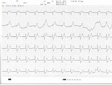 Pasados 30 minutos decide solicitar una coronariografía. El motivo: un electrocardiograma (ECG) no muy típico para la edad del paciente, el cual tiene como factor de riesgo vascular: obesidad e hipertensión arterial (HTA).