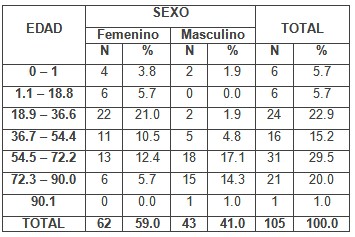 Tabla 2. Distribución de frecuencia por edad y sexo en los pacientes con aislamientos de Escherichia coli.